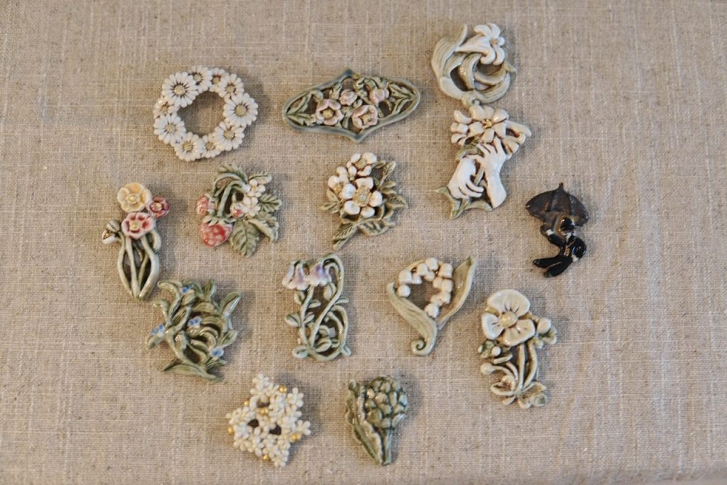 直営店シエスタラボ では、9日(日)で「小菅幸子 陶器のブローチ展」が終了しました。