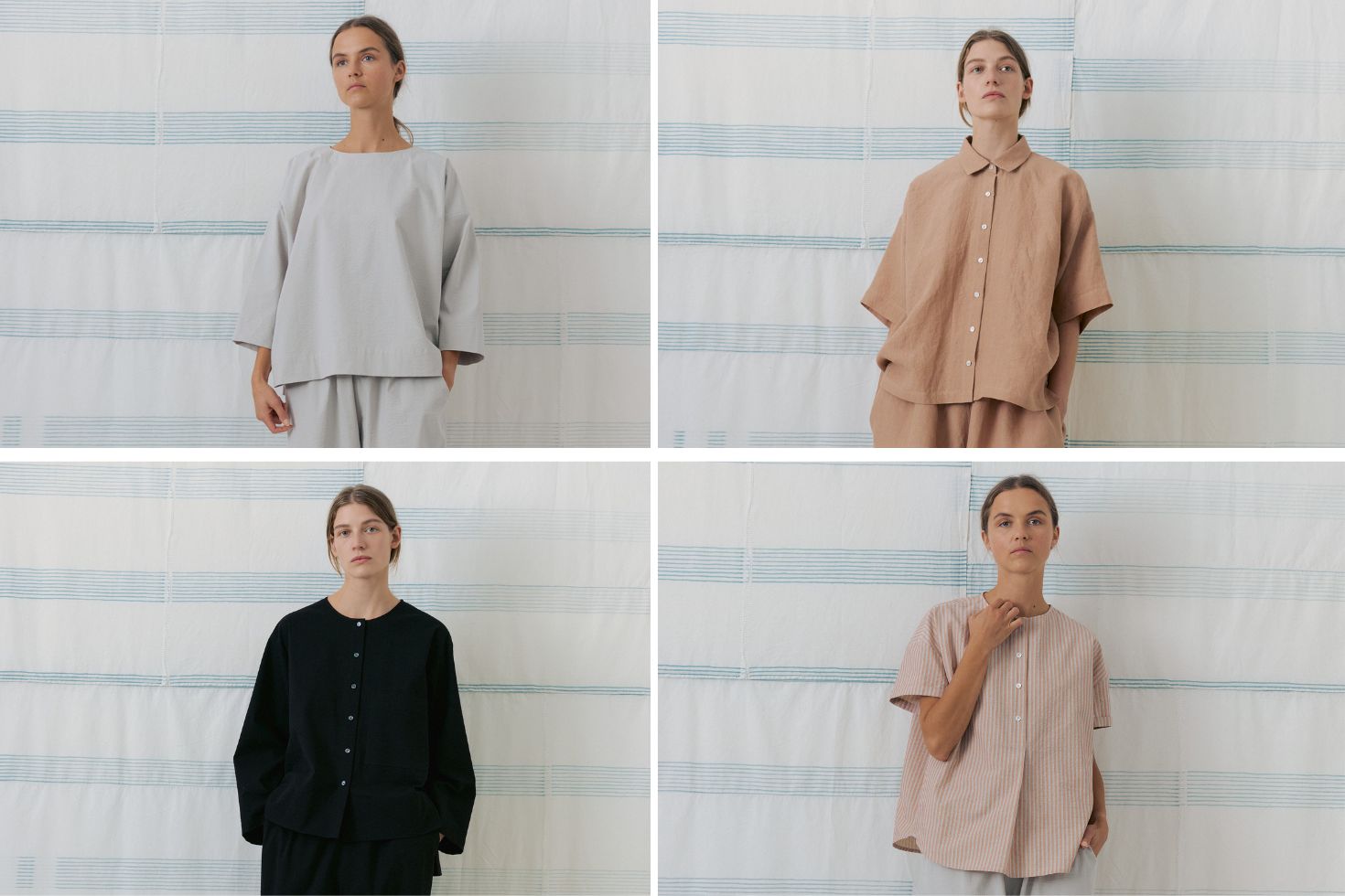 mukuらしいラインが魅力の「ワイドトップ(全3色)」、シンプルだけど技あり!な「襟付きシャツ(全4色)」、着こなしを広げてくれる「ポケットシャツ(全2色)」、リュクス感のある大人可愛い「ラウンドカラーシャツ(全2色)」。どれを春夏のオシャレに迎えようか目移りしてしまいます!