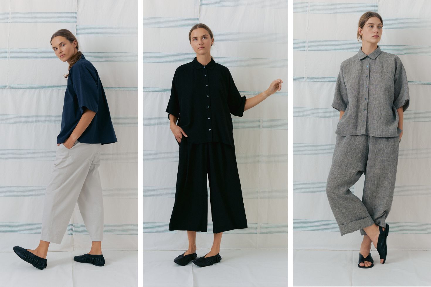 ドレスと並んで根強いファンの多いmukuのパンツ。今季は3種。