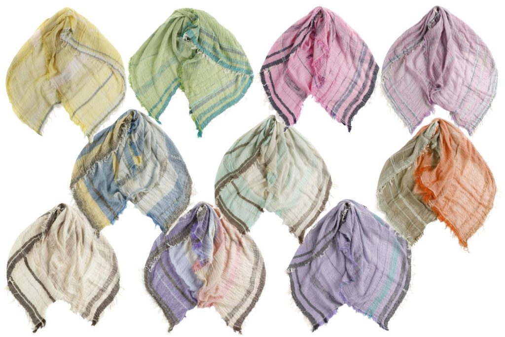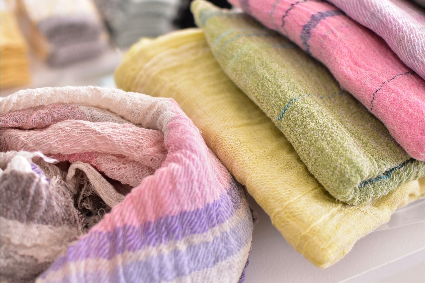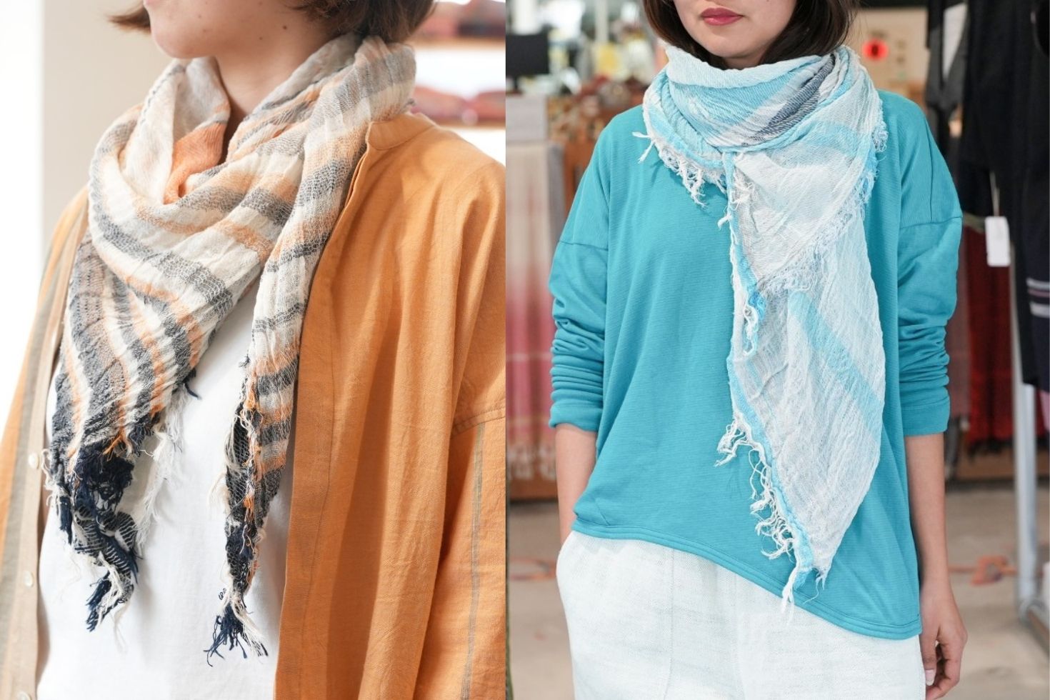 播州織(★)に魅せられ生地を開発していく過程で、生地は柔らかくなり過ぎてシャツにならないくらいのものができた。あれ?これは巻き物やったらいける!と誕生したのがこのショール。今やtamaki niimeを代表するプロダクトの一つです。