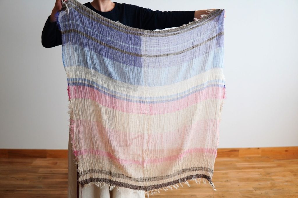 経糸と横糸を緩めに織っていくのがtamaki niimeのショールの大きな特徴。