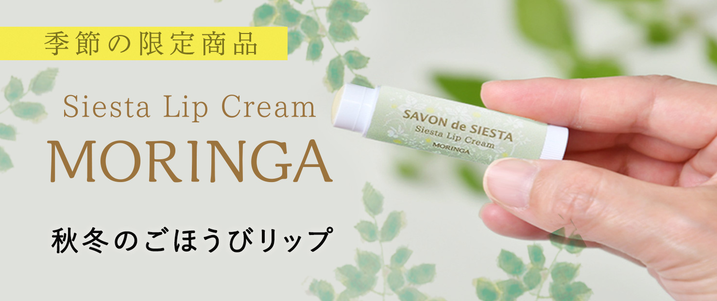 モリンガオイルなど7種類の天然成分のみでできたリップクリーム「シエスタリップクリーム モリンガ」も、ぜひご一緒にお試しください!商品のご案内はこちらからご覧いただけます。
