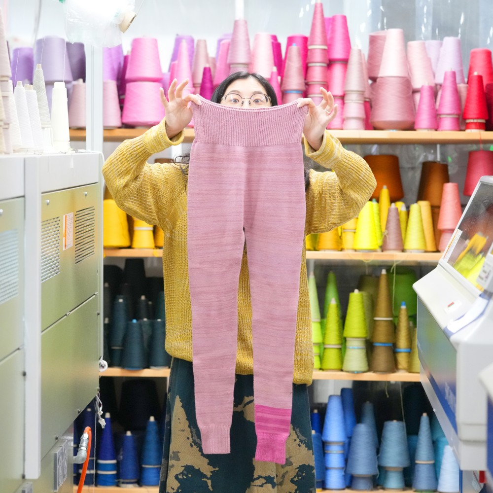 デザイン性のすごさもさることながら「自社紡績で開発した新しい糸で作れる作品として生まれた」というほど、糸にこだわりをもった作品。何度も試作を重ねて出来上がった肌触りの良さにこだわった作品これは実物を見るしかない!