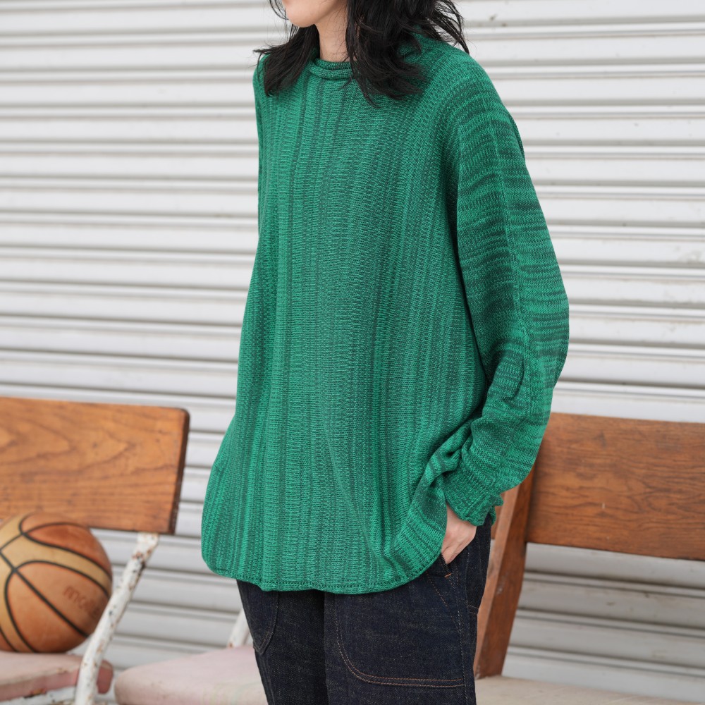 経糸にコットン、緯糸にウールを使用した柔らかくて暖かくとても軽い生地で作られています。ラグラン袖と生地の織り柄を活かすために身頃は継ぎ目のない1枚の生地でできているのも特徴です。キレイめにもカジュアルにも色々なコーディネートを愉しんでいただけますよ。