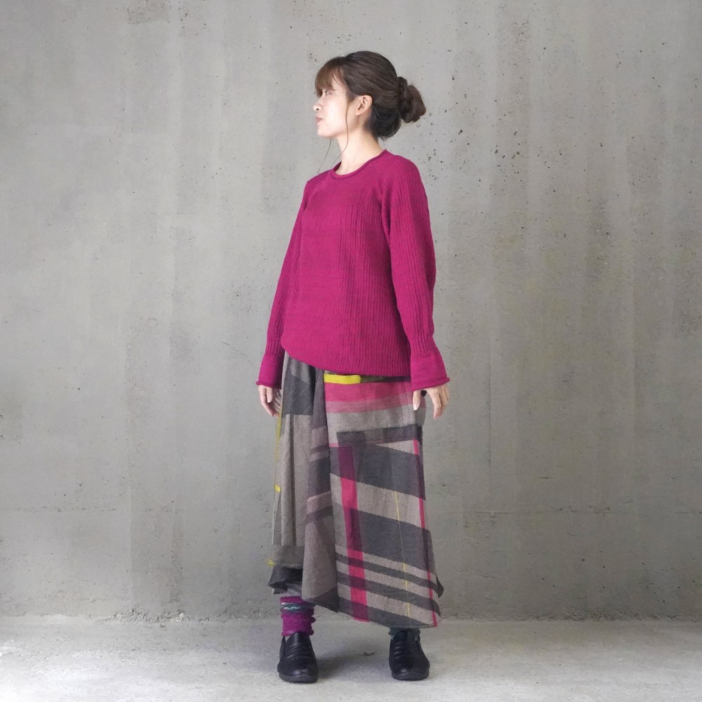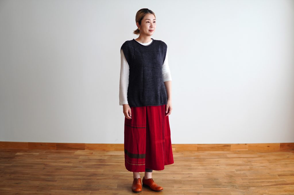 私が今季新作の中であっと驚いたのは「あべこべ」という名のコットンニット。前後裏表どれでも着られるお洋服はtamakiniimeではわりと常識(これが常識となっている時点ですでにすごいこと)なのですが、まさかのニットでこれが実現するとは!