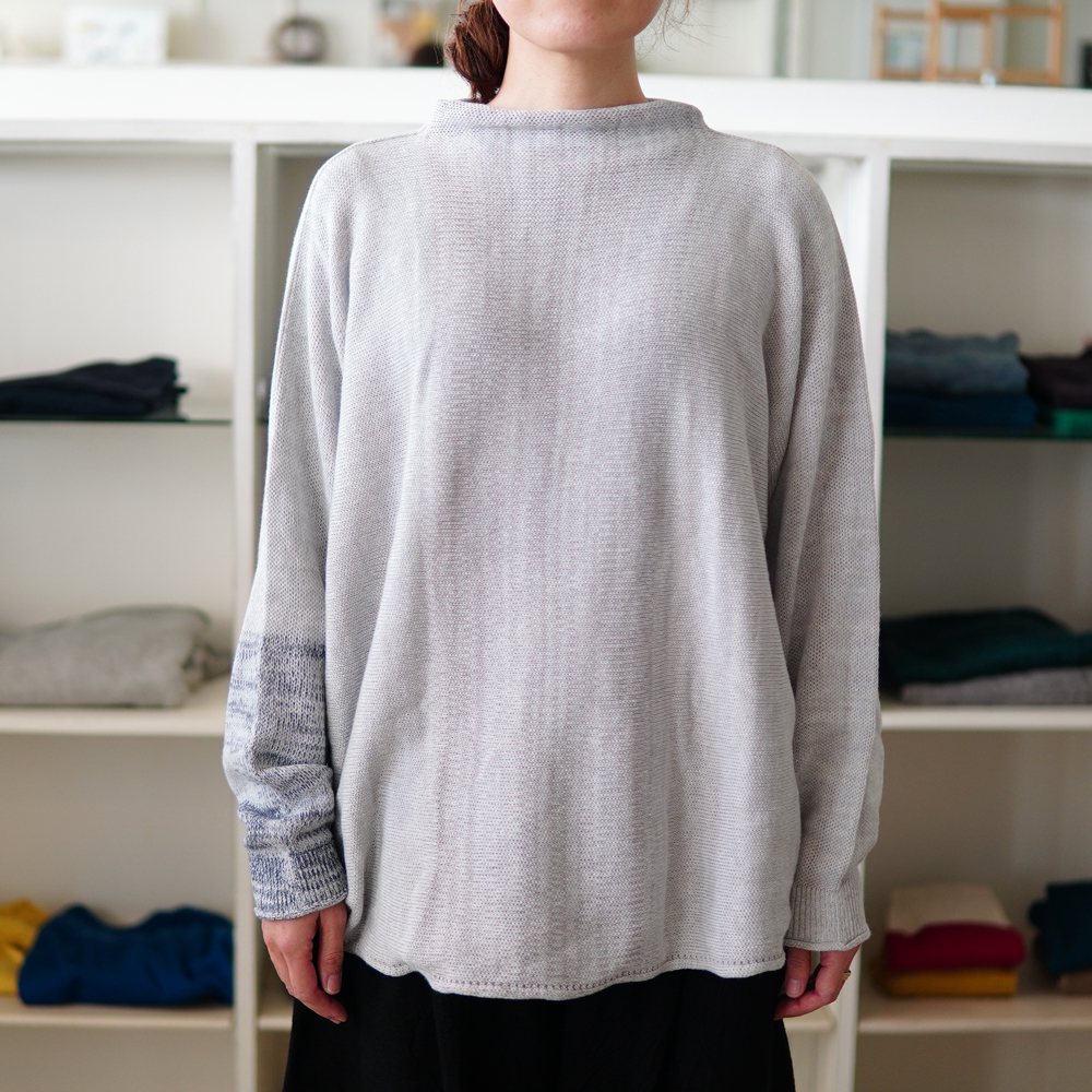 今季の新作のコットンニットの「あべこべ」に合わせてみても、とってもすてき!「あべこべ」はタイトルどうり前もうしろも裏も表もないあべこべなコットンニット。どんな着方もできてしまうtamaki niimeらしさあふれる1枚。