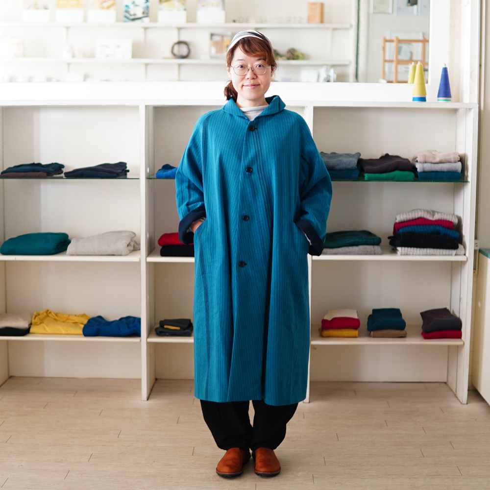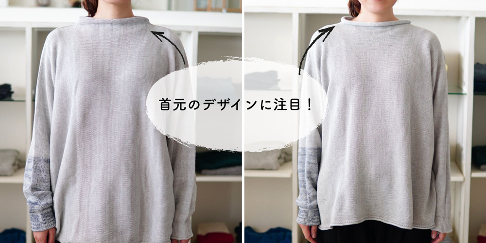 そして、この襟元のくるんとした形。表面で着ると内巻きに、裏面で着ると外巻きになるんです。少し立ち上がるこの形がかわいくて、そしてあたたかい。着心地の良さは、試着をするとわかるので、ぜひぜひこの機会にお手に取ってみてくださいね。tamaki niimeスタッフの山下さんも「今季のイチオシです!」と仰っていた自信作です!