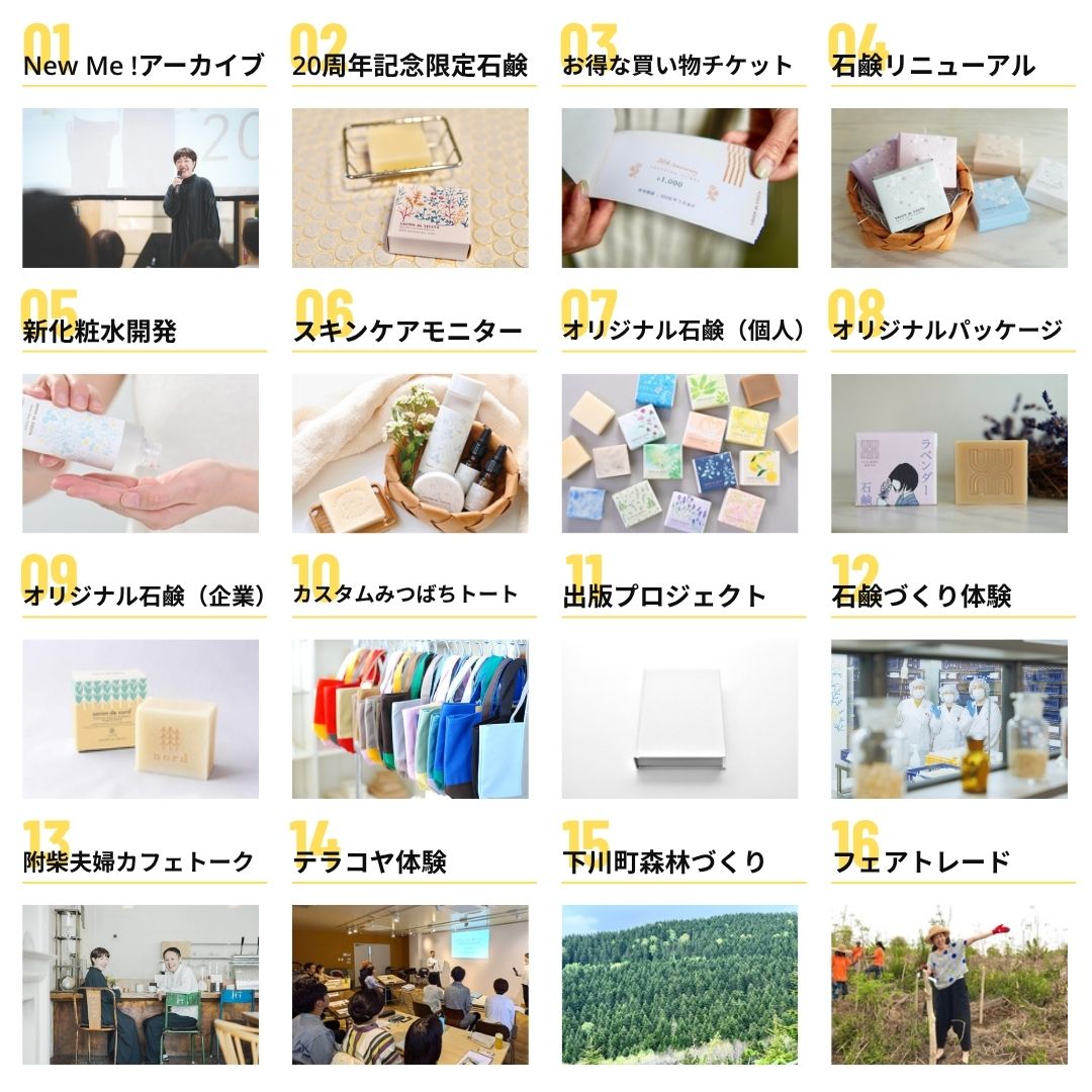 支援者には、特典(リターン)として商品やサービスをご提供させていただくのが一般的で、今回のSAVON de SIESTAのクラウドファンディングでは、16種類以上の特別な特典(リターン)をご用意させていただきました。