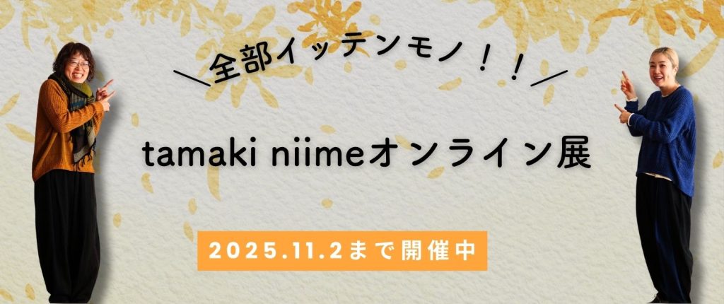オンラインショップで開催中のtamaki niimeオンライン展にあたたかなアイテムが追加で届きました。今回もすべてイッテンモノで同じものが2つとしてないため、只今プレビュータイムとしています。本日20時より販売をスタートしますので、それまでにじっくりご覧いただければと思います。
