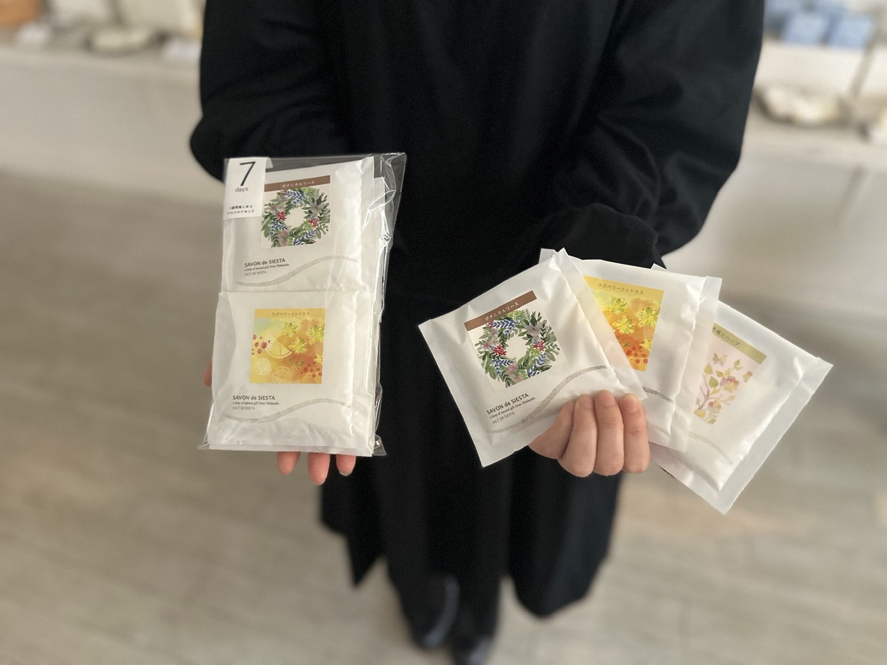 お風呂で温まった後は、身体の血行を更に良くするために、手足のマッサージはいかがでしょうか?肌なじみが良く保湿効果のあるシエスタのボディオイルと、指先・かかとや唇のケアにもオススメのマルチバームも今回のフェア対象商品です。