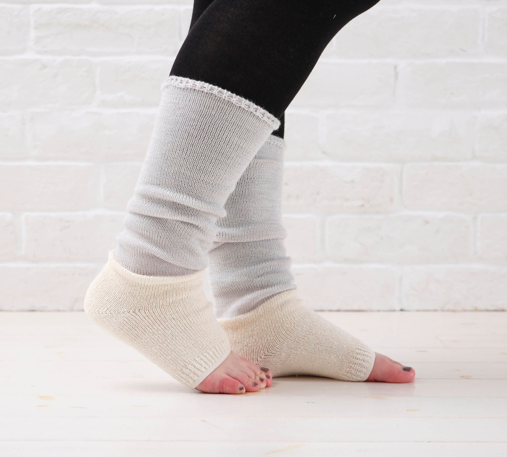 今回は、合わせて履きたいレッグウォーマーと、おやすみ時間もあたたかいおやすみソックス、隠れた名品シルクの5本指ソックスをご紹介いたします!