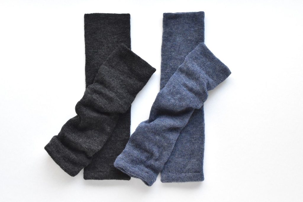 やわらかであたたかい素材なので、手袋変わりに使う方も多いんです。長さがあるのでくしゅっとさせるととってもかわいい!色味はチャコールとデニムの2種類ですが、どちらもやさしい雰囲気の色味でどんなお洋服にも合わせやすいです。お店スタッフも「あたたかくてやめられない!」とハマり、手にも足にも毎日使用するほどお気に入りになりました。