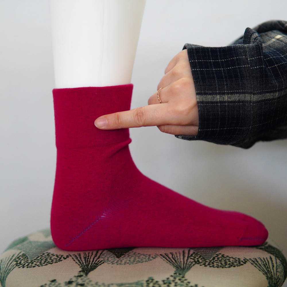 見た目にはシンプルですが、実はたくさんのこだわりがギュっと詰まった、冷え性さんの強い味方となる靴下です。
