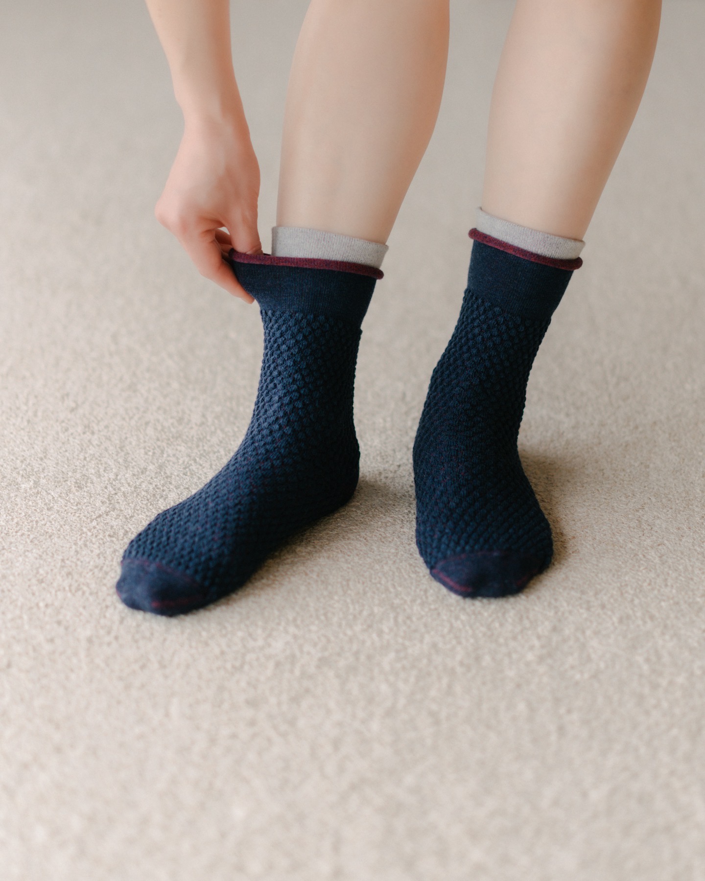 見た目にはシンプルですが、実はたくさんのこだわりがギュっと詰まった、冷え性さんの強い味方となる靴下です。
