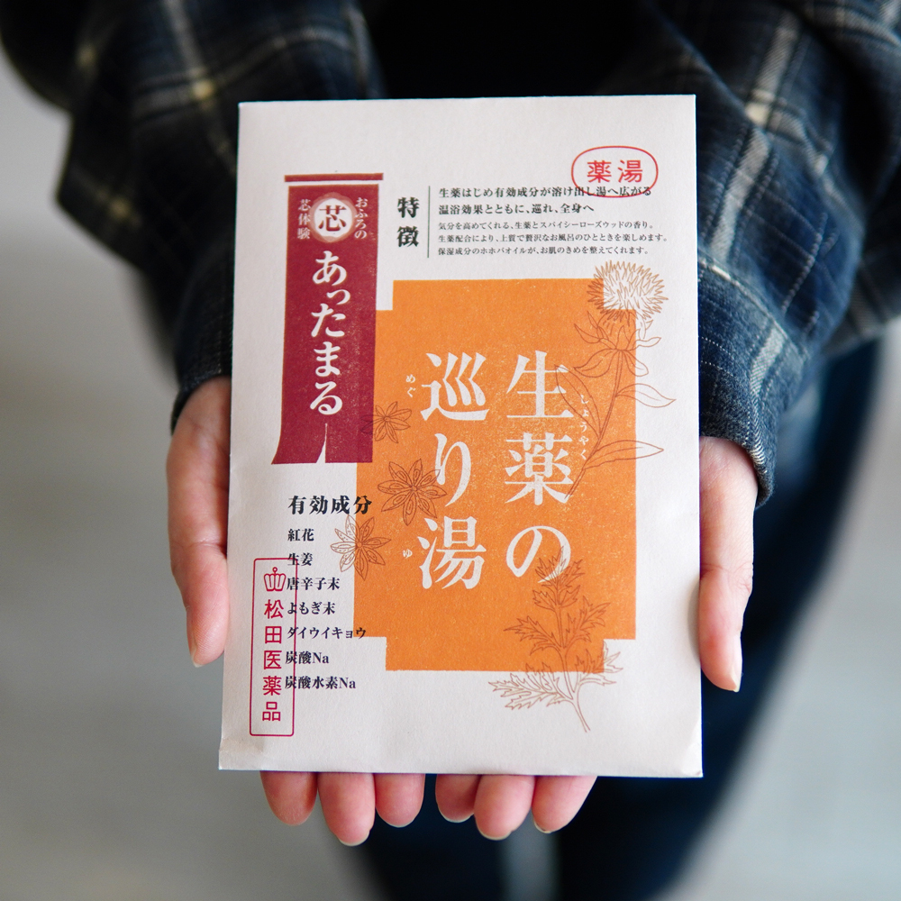 期間中、お店とオンラインショップで「温活フェア対象商品」を含めて5500円(税込)以上お買物をされた方に、生薬のめぐり湯を1包プレゼント!