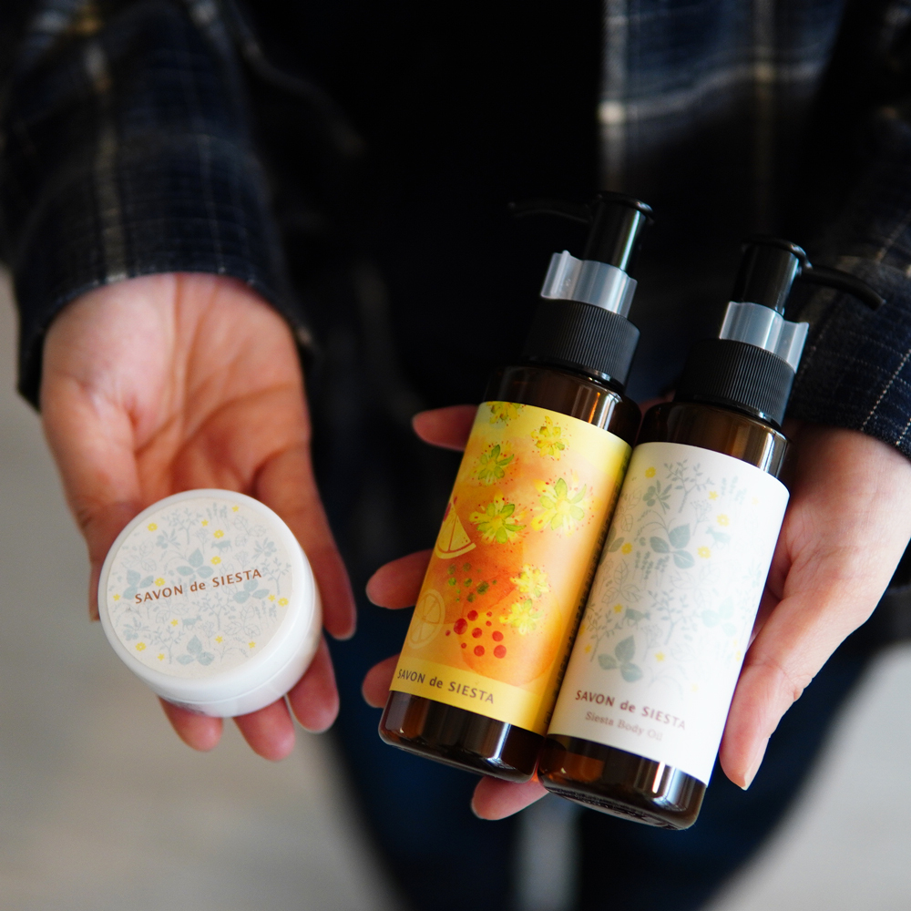 マッサージにはお肌へのなじみが良く、保湿力も兼ね備えたシエスタのボディオイルやバームがおススメです!ベタつかないのに、しっかり保湿できるオイルで、隙間時間にトライしてみてくださいね!