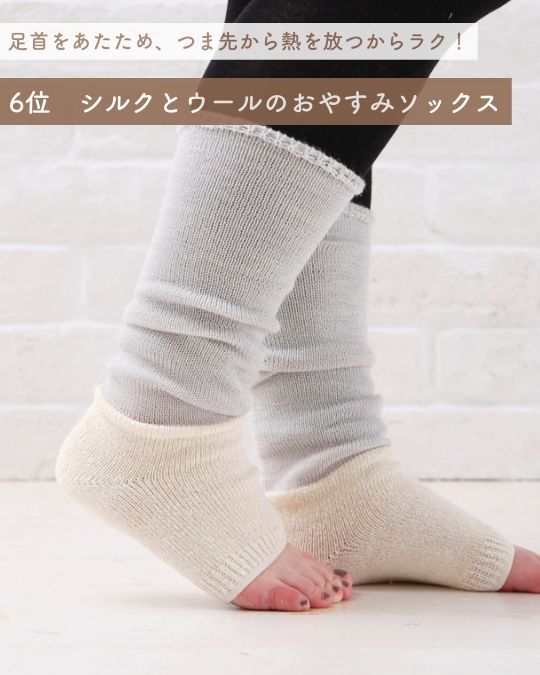 6位はシルクとウールのおやすみソックス。足が温まると夜もぐっすり眠れますよね。