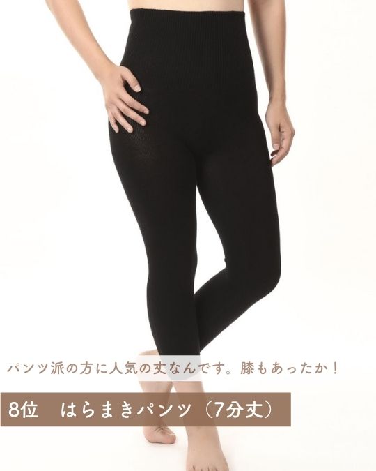 そして8位ははらまきパンツの7分丈。パンツ派の方から人気の丈で、膝も覆ってくれるので、温まり方が違う!とお客様からもご感想をいただいています。今年は腹巻パンツを5分、7分、10分と3種類ご用意したので、お好みの長さから選んでくださいね。