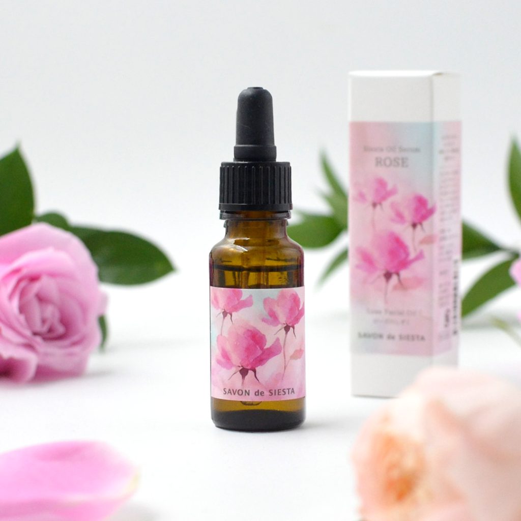 今回ご紹介する美容オイル「シエスタオイルセラム ローズのしずく」は、ローズオットー精油だけで香りづけされ、リッチな使い心地に仕上げています。