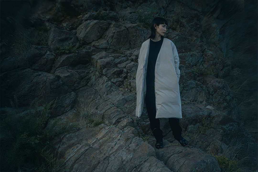 冬の主役でありながら、小物の魅力を優しく引き立ててくれる――それが『NAKASHI DOWN COAT』。暖房のきいた室内でものぼせにくく、ずっと着ていられる心地よさも魅力です。