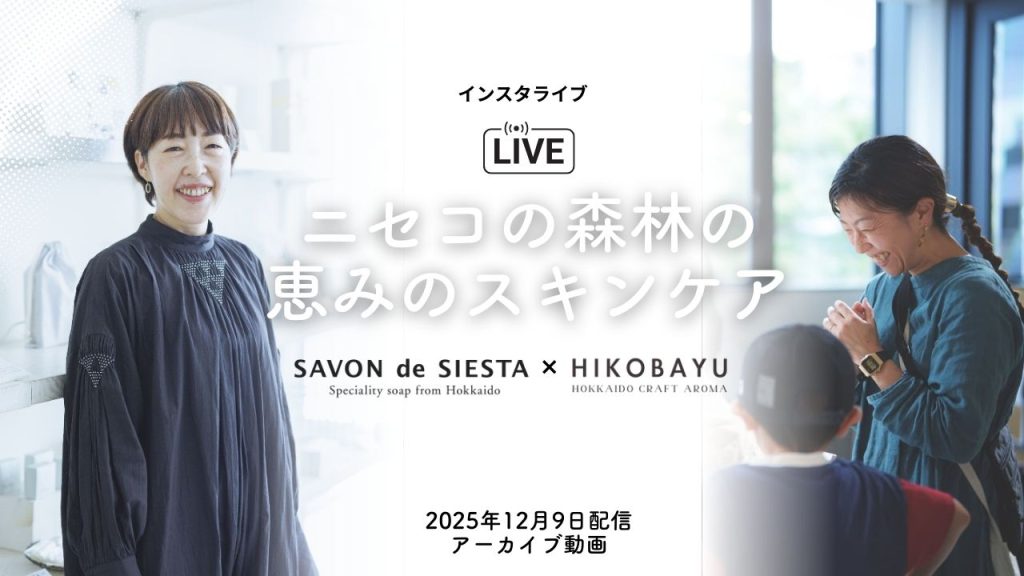 インスタライブの配信は、SAVON de SIESTAとHikobayuさんの公式インスタグラムから行います。