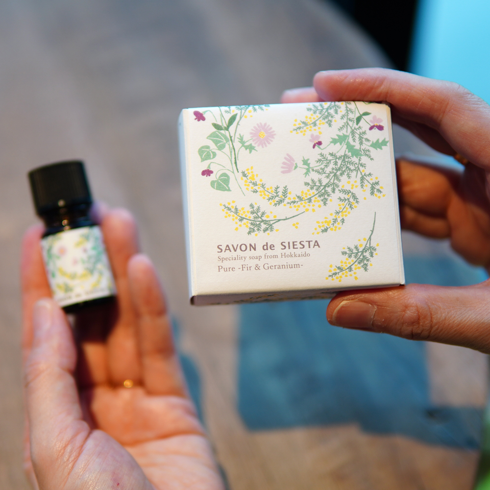 北海道ニセコで採れたモミの香りで包み込まれる安心感を、ラベンダーやローズゼラニウムから落ち着きのある優しさを、明るい気持ちにされてくれるのはマートル、クラリセージから感じていただける絶妙なブレンドが完成しました。
