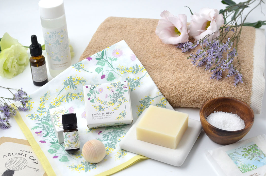 北海道ニセコで採れたモミの香りで包み込まれる安心感を、ラベンダーやローズゼラニウムから落ち着きのある優しさを、明るい気持ちにされてくれるのはマートル、クラリセージから感じていただける絶妙なブレンドが完成しました。