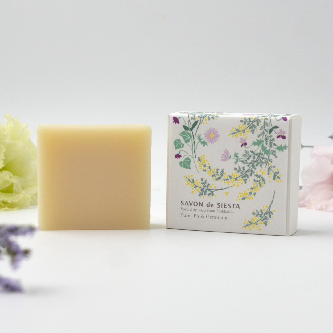 ①New me Pureソープ モミ&ゼラニウム