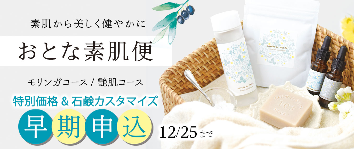 SAVON de SIESTAは、お得で楽しい1年間の定期便『シエスタの定期便』の、更にお得な早期募集が明日12月25日までとなります!