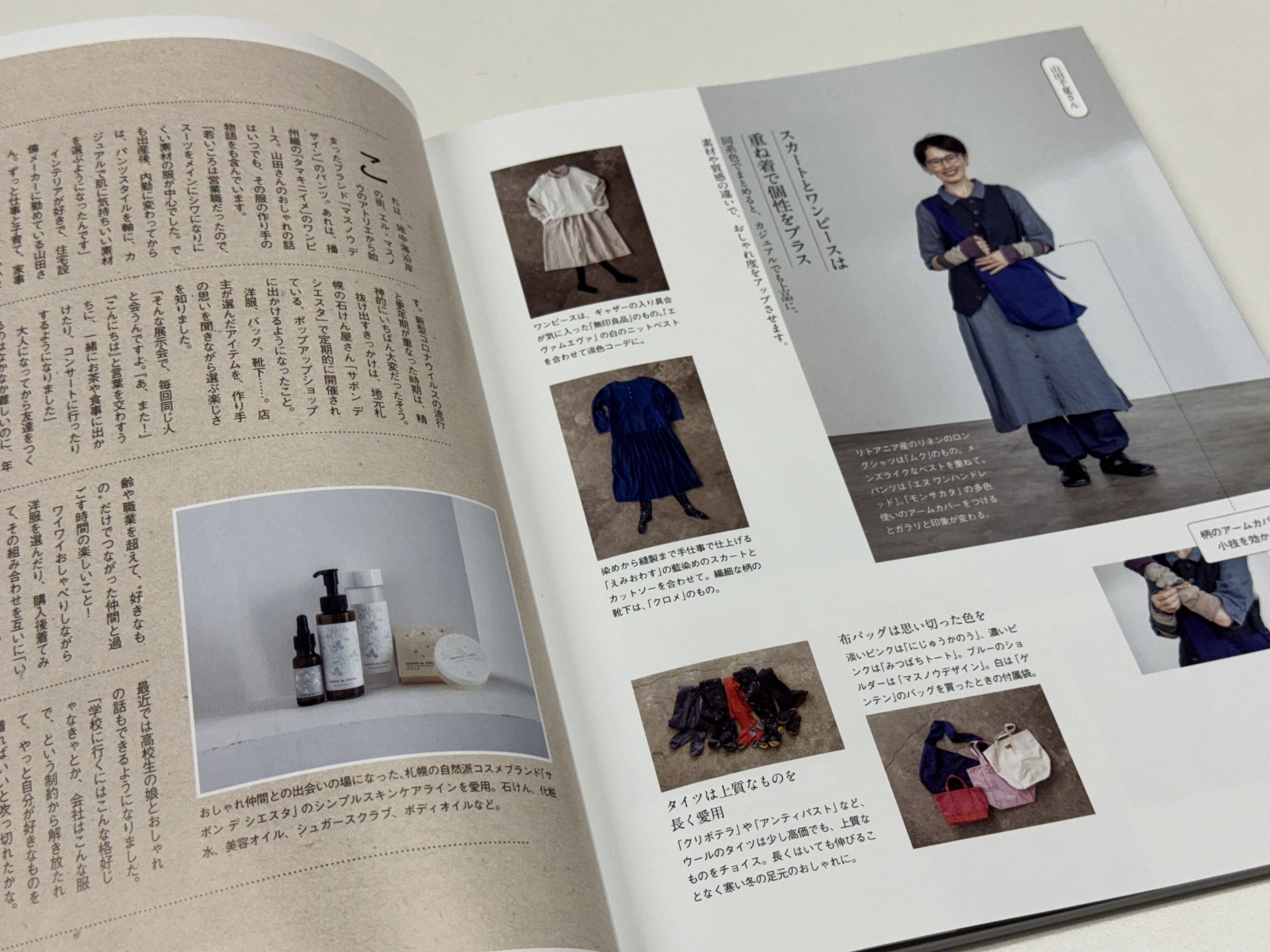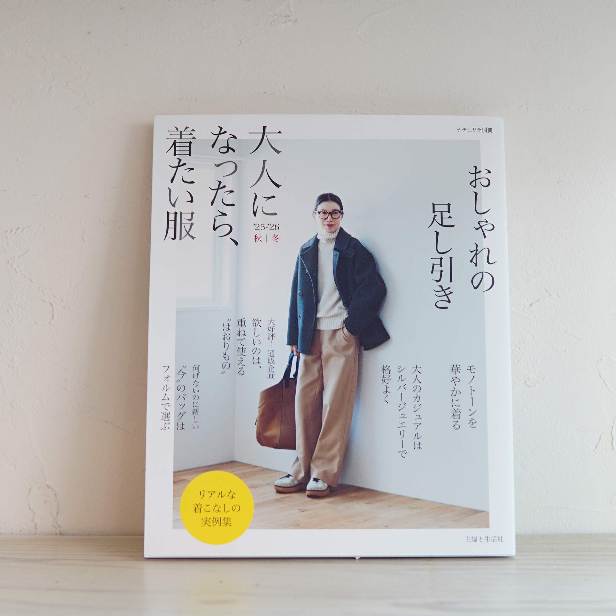 New Me!の講演会でもお話しいただいたライター一田憲子さんが企画・編集に関わられている雑誌ナチュリラ別冊『大人になったら、着たい服 ’25-‘26秋冬』(主婦と生活社:2025年10月29日発行)に、シエスタのお客さま(山田さん)が特集記事としてご紹介されました(p84-89)。