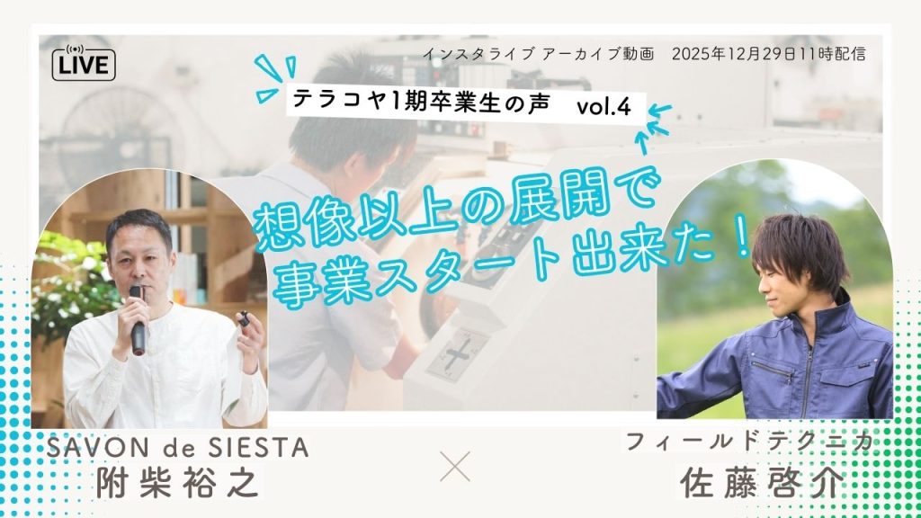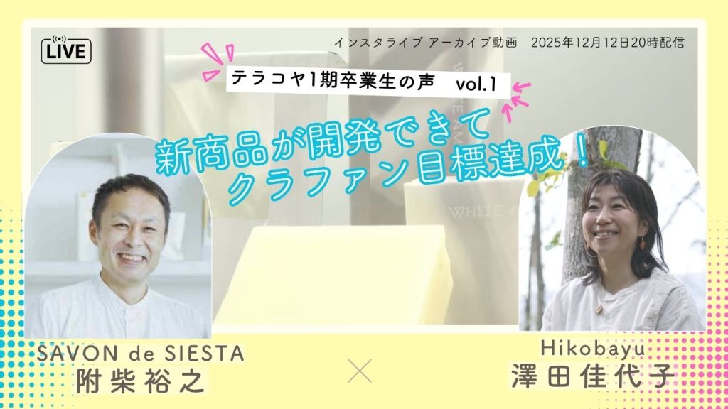 この前半で話をしている附柴彩子のように、ゼロからはじめて、好きなことを仕事にして、今はスタッフも増えた会社として創業20周年を迎えるに至った、その背景にある考え方や、やり方を実際に学んでみたい方は、ぜひ『シエスタのテラコヤ2期』の説明会もご視聴ください。