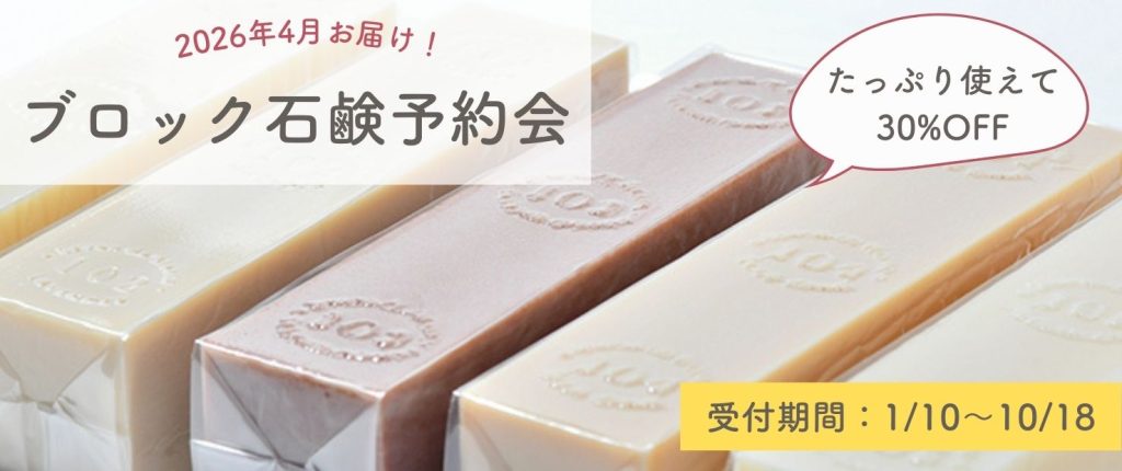 また少し先のお話ですが、ブロック石鹸はじめとする定番石鹸の種類と価格改定を夏前に予定しております。今の価格でお買い求めいただけるのは、2026年1月と4月の予約会までとなります。