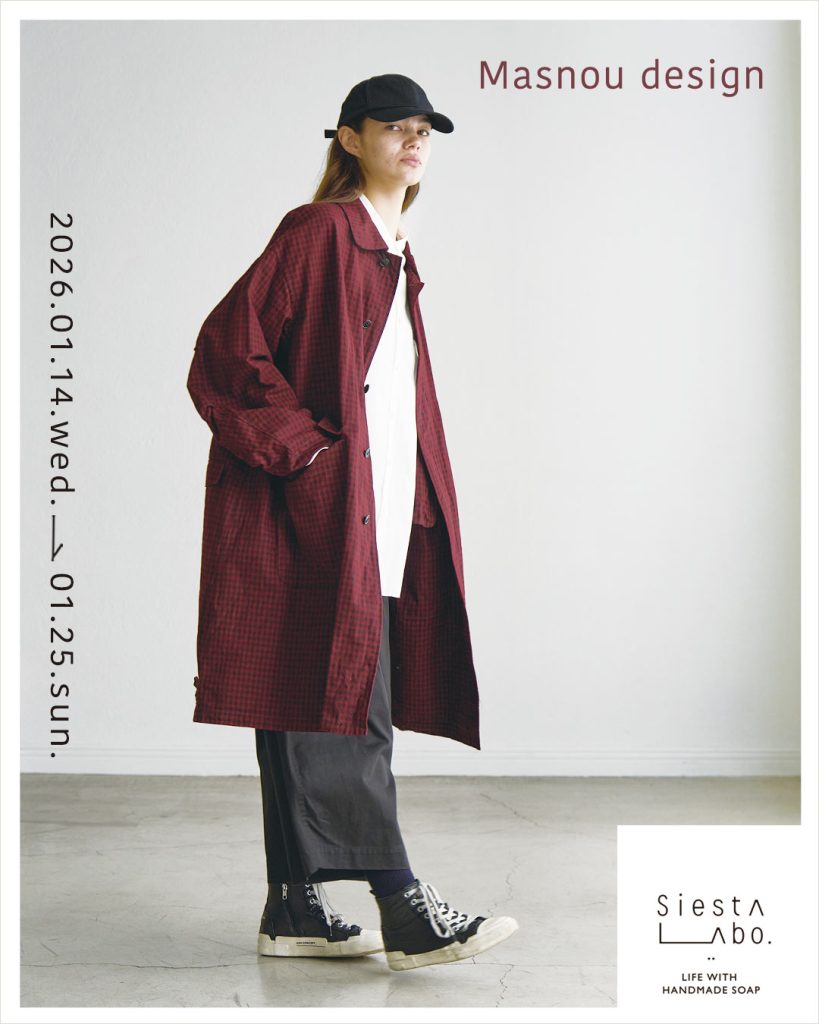 マスノウデザインさんでは、もう完売している人気のコート。シエスタのために特別に作って頂いたので、手に入るのは今ここだけとなっております!