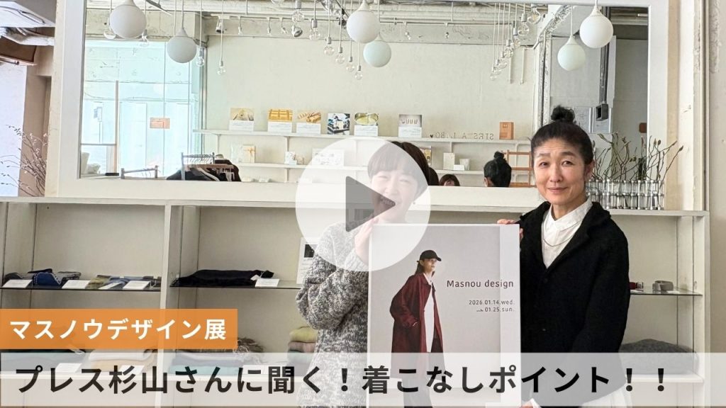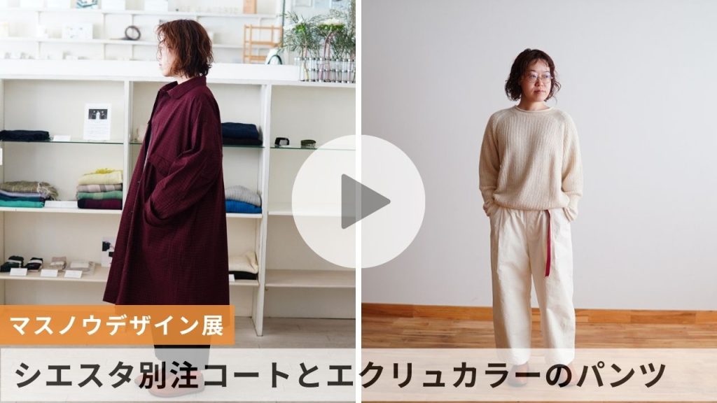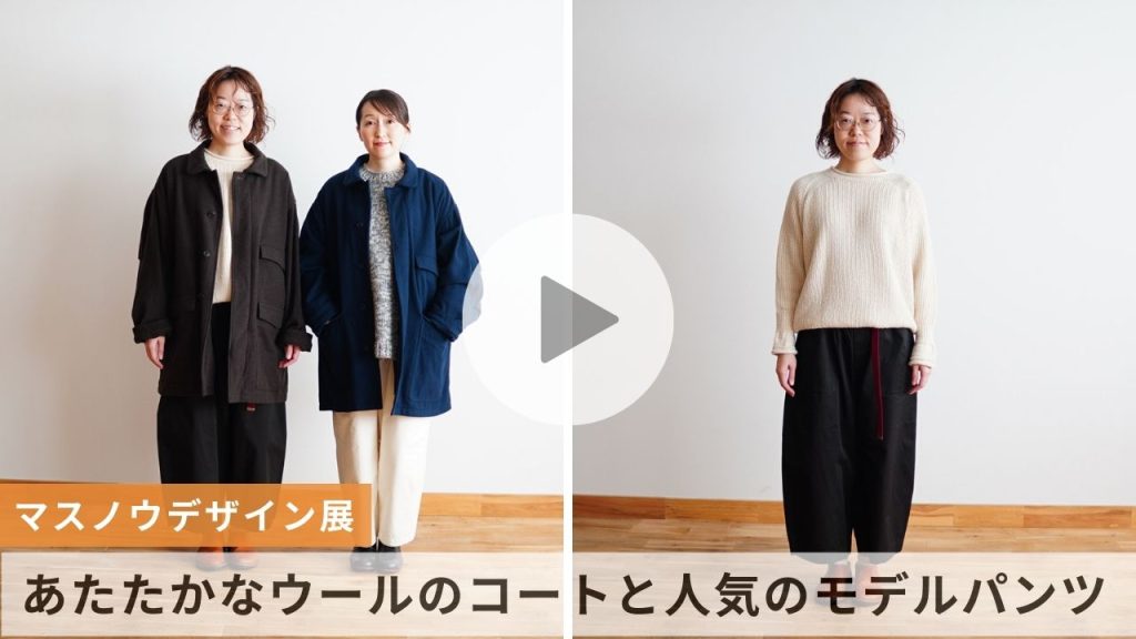 どれも本当に素敵で、私も自分用に何を選ぼうか迷っています。(ドブレパンツのエクリュに心がかたまりつつあります。悩むのも楽しいですね。)ファンの一人として、マスノウデザインの魅力を感じるのは、実はハンガーにかかっているときではなく、誰かが身につけて動いているときなんです。