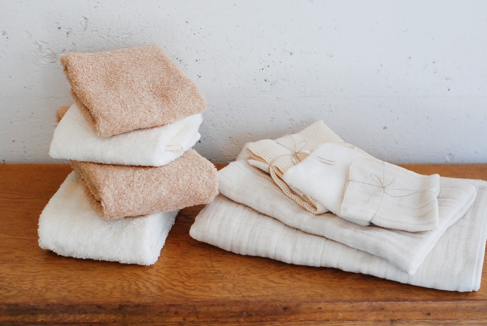 オーガニックコットンを使ったタオルケットとタオルシーツです。