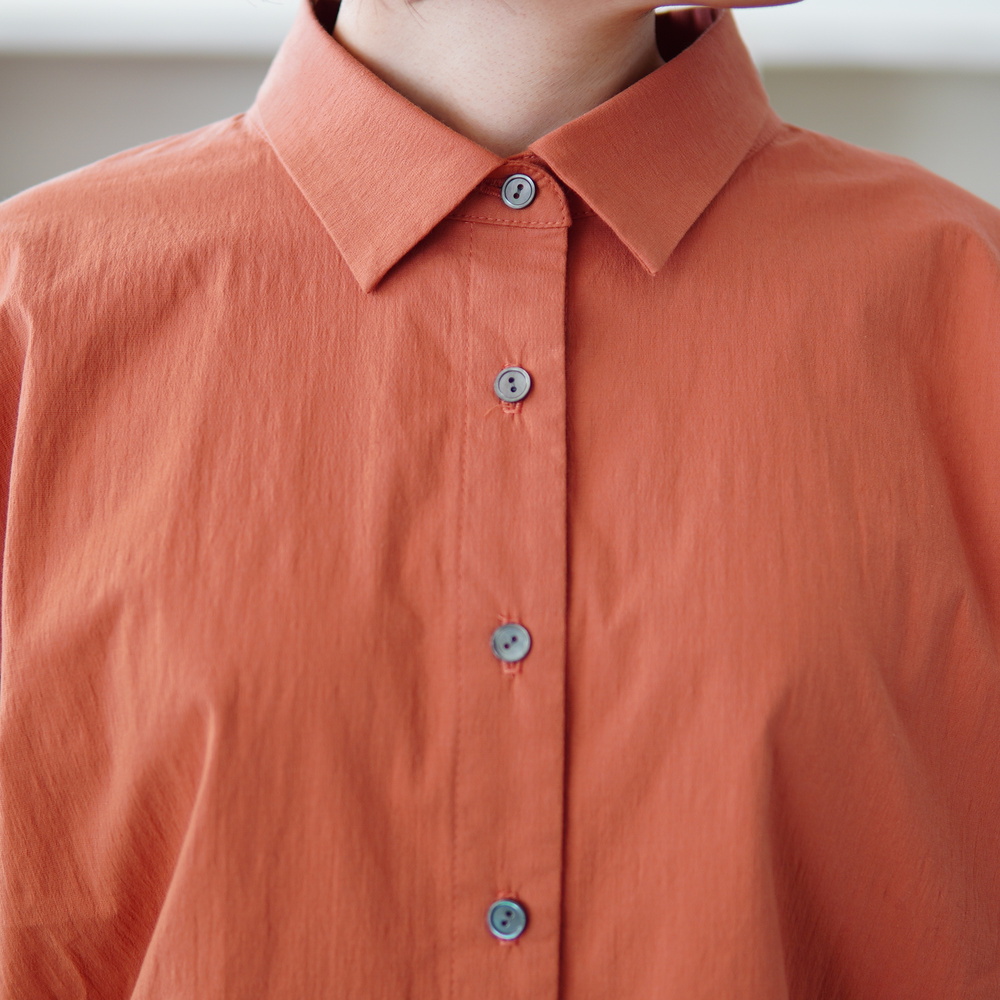 mukuのすばらしさは襟のたたずまい、といっていいほど、私はmukuの襟が大好きです。今回届いたカラーシャツの襟も愛すべきパーツのひとつです。