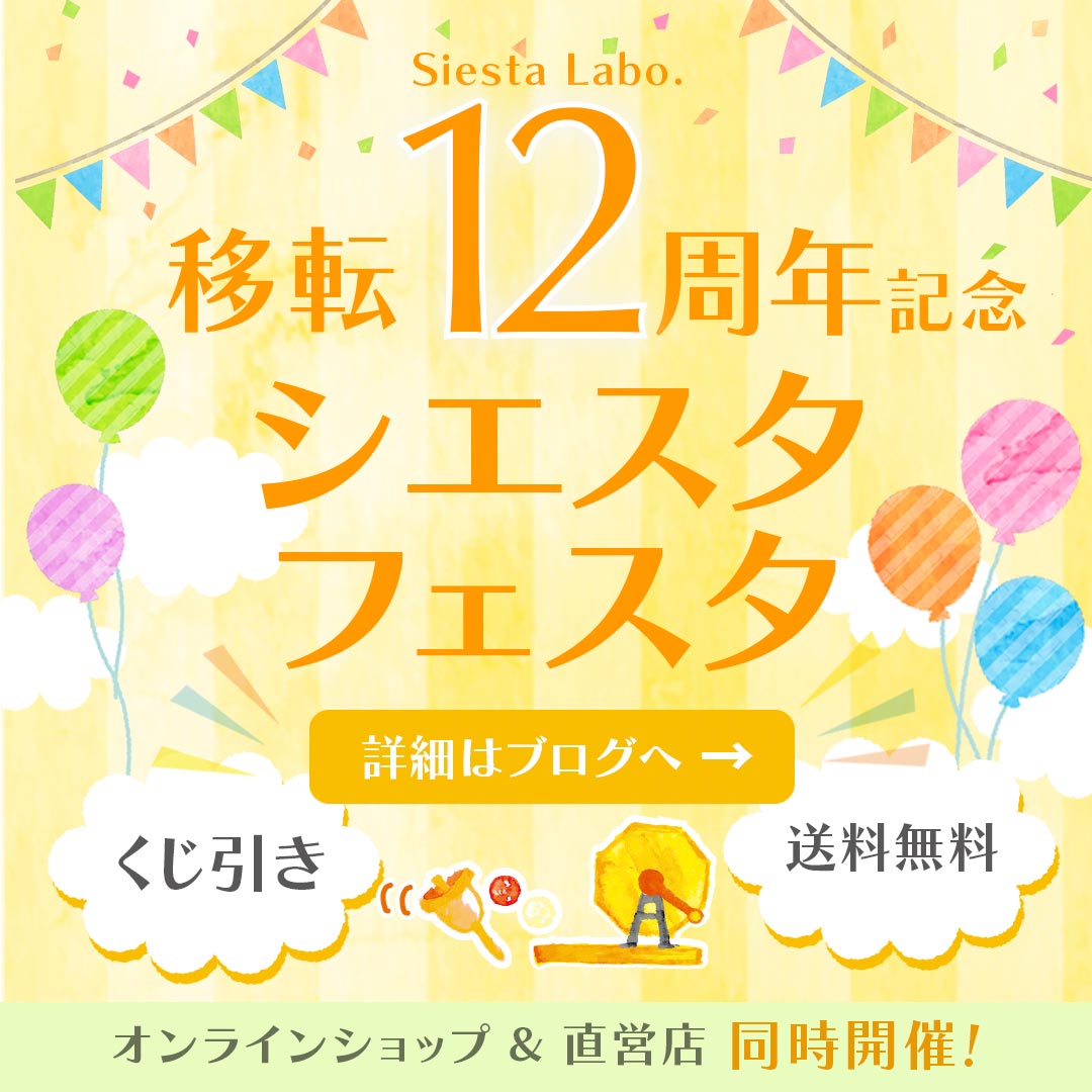 移転12周年を記念して、皆様への感謝の気持ちと、これからも楽しい時間を過ごしていけますようにと心を込めて、「シエスタフェスタ」を開催いたします!
