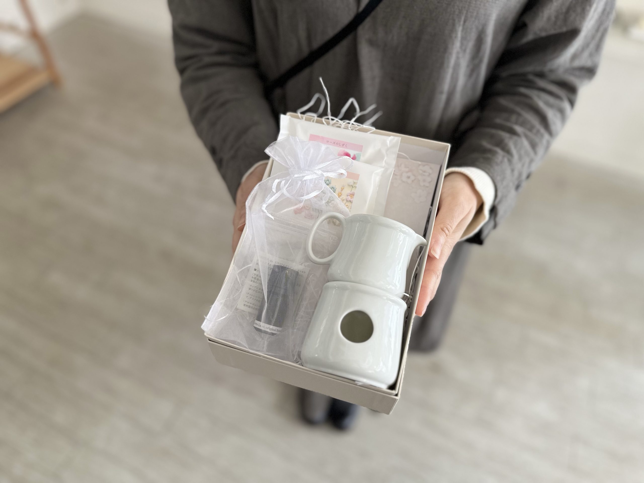アロマポットをセットにしましたので、キャンドルの優しい光とふわっと心に花咲くような香りを楽しんでいただけたら嬉しいです。