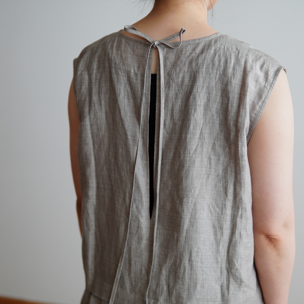 今回もたくさんのワンピースがオーダー可能ですが、私のお気に入りは「シエスタ別注 バックリボンドレス」。2020年のコレクションでご紹介をしたこのドレスは、前から見ても後ろから見ても、360°どこから見ても美しい1着。夏は1枚でさらりと、寒い季節にはカットソーやニットと重ねて、長いシーズン楽しめます。