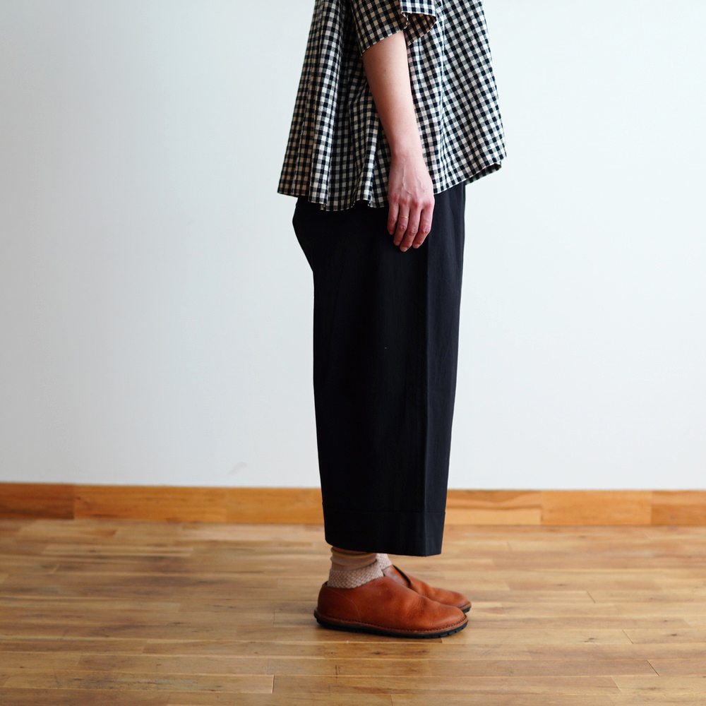 こちらのヘム付きワイドパンツは、ほどよいワイド感がいいですよね。ヘム付きなので、カジュアルになりすぎず着れて「お仕事にも使いたい!」と仰る方がとても多いです。