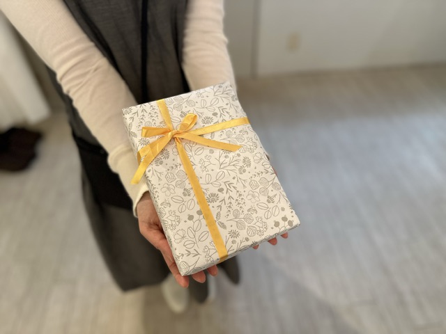 無料の紙袋でのラッピングの他、有料にはなりますが箱入れも可能です。どうぞお気軽にお申し出くださいね。