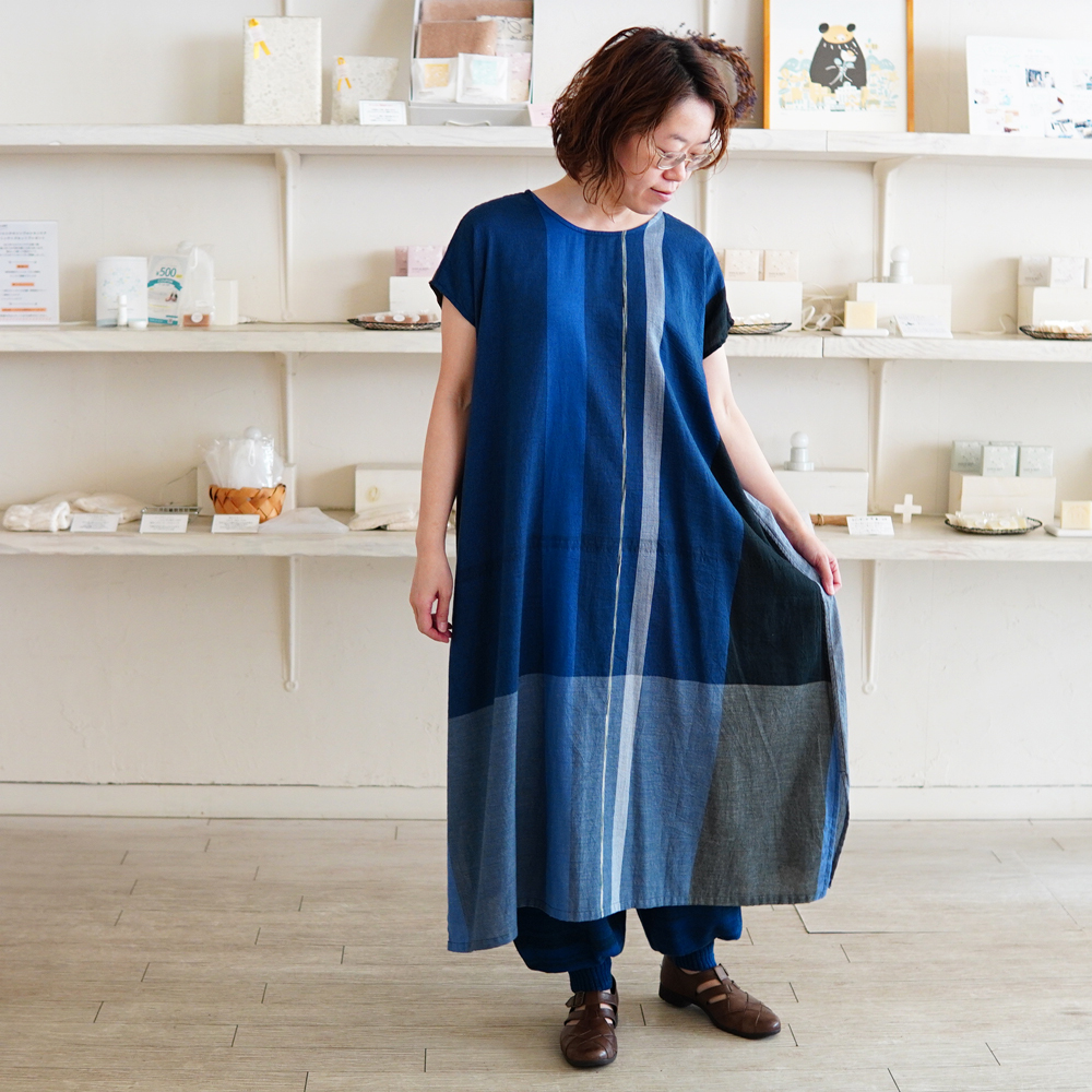 日本の伝統的な綿織物の播州織りは、主にシャツなどに使われることが多い織物です。tamaki niimeの創設者である玉木新雌さんが「肌あたりがやわらかい気持ちの良い素材をつくりたい!」と試行錯誤しながらできあがったものが、代表作の「roots shawl」。ふわふわと雲の様な肌触りと軽さ、一度手に取るともう手放すことができない!と思わせるショールです。その後も、ワンピース、パンツ、ニット、デニムなど様々なアイテムが登場しています。