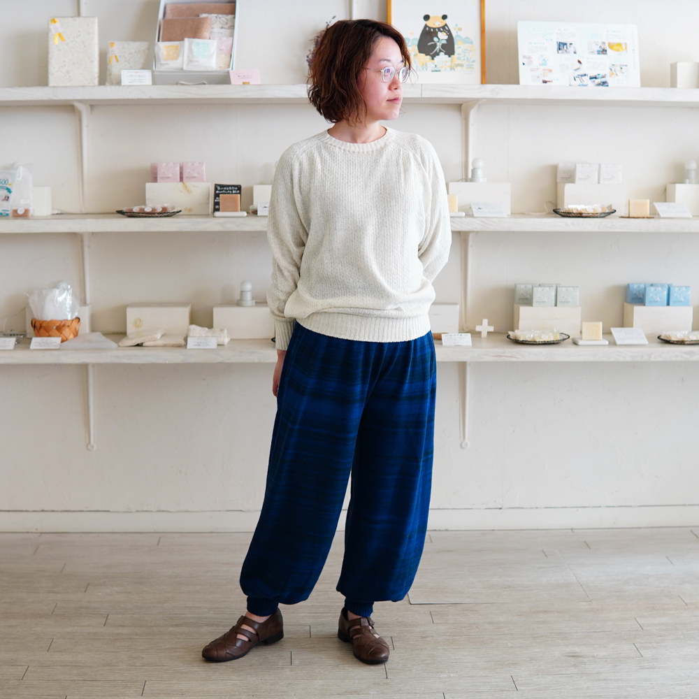 私の中でニットパンツといえば、細身できれいめなイメージだったのですが、ゆらニットは正反対!ゆったりとしていてシルエットがとにかくかわいい。足首のリブが大きく長めなので包み込まれている安心感があります。