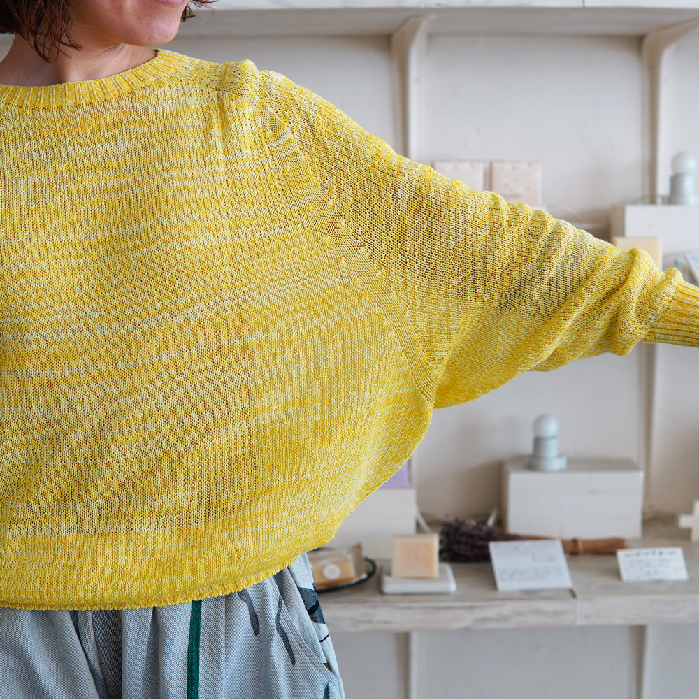春から夏にかけて、涼やかにさらりと着たいという想いから生まれた春夏ニット「涼」。できたてほやほやの一枚です。