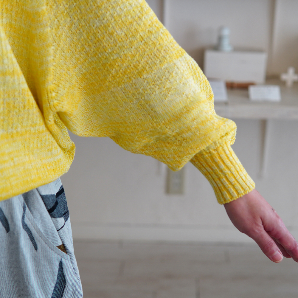 「涼」は、写真のイエローの他、ベーシックな黒やオフホワイト、ライトブルーもご用意しています。自分の「好き」や「心地よさ」を大切にしたい日に、そっと手に取りたくなるニット。
