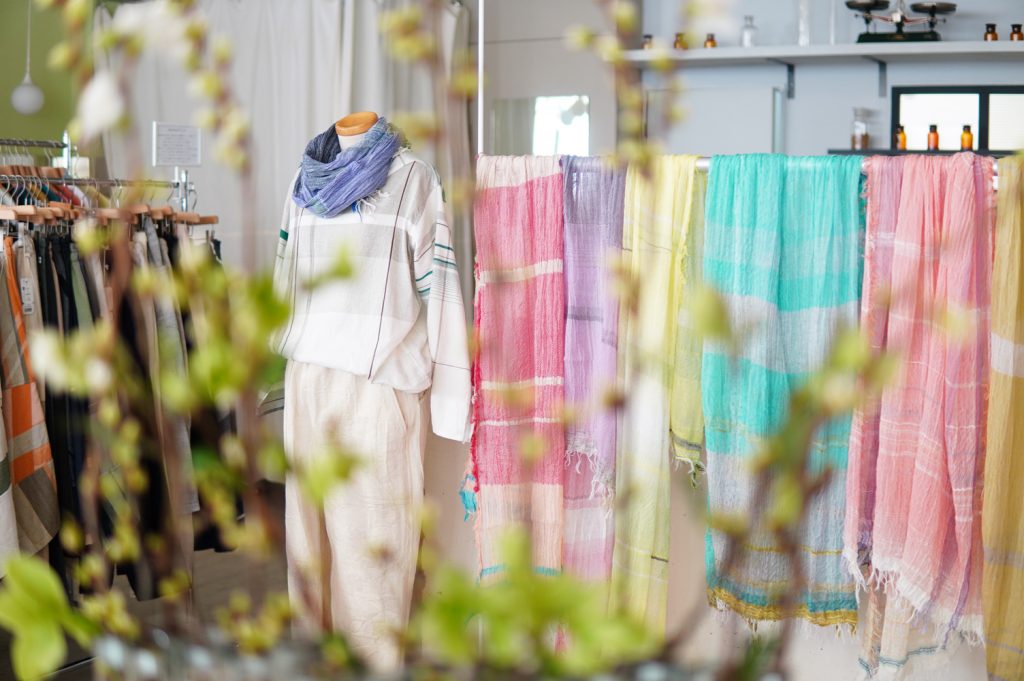 西脇の工房から春の新作を携えて、スタッフの方も在店くださいます。色の重なりや風合いを感じる時間。お気に入りの一枚を見つける、そんなひとときをゆっくりとお過ごしください。