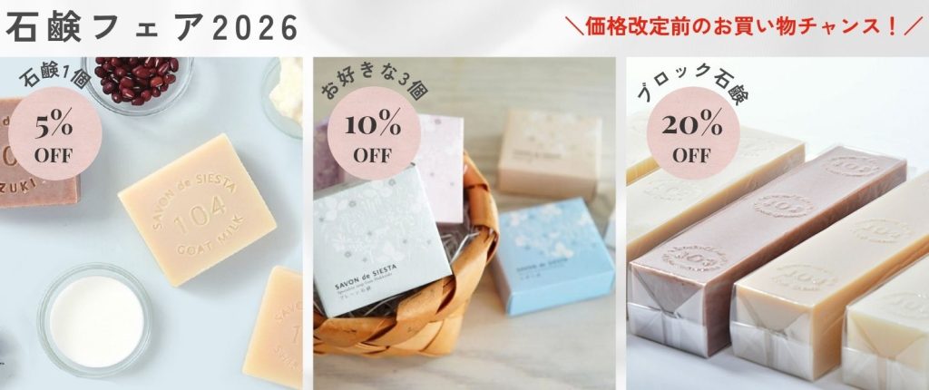 2026年6月より定番石鹸の価格改定が決まっておりますので、改定前のお得にお買い物いただける機会です。ぜひこのチャンスをご利用くださいね。