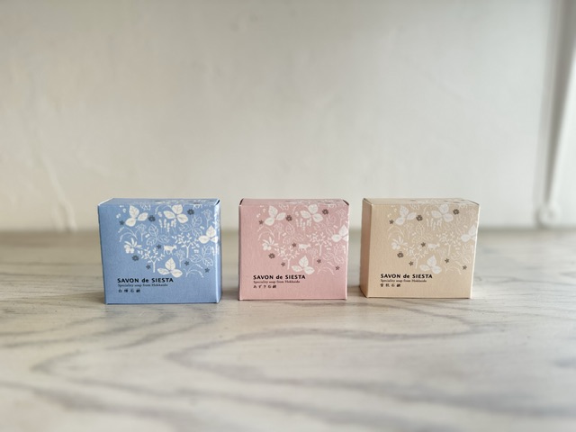 ①あずき石鹸 ②白樺石鹸 ③雪肌石鹸