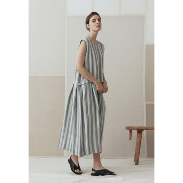 しっとりと上質なリネン地をたっぷりと使ったドレスは、動くたびにふわりとスカートの裾が揺れ、美しいシルエットを描きます。その姿に心がすっと高まり、身につけるたびに自然とご機嫌な気持ちに。ドレスに合わせて背筋を少し伸ばせば、いつもより気持ちよく一日を過ごせる——そんな力を秘めた一着です。
